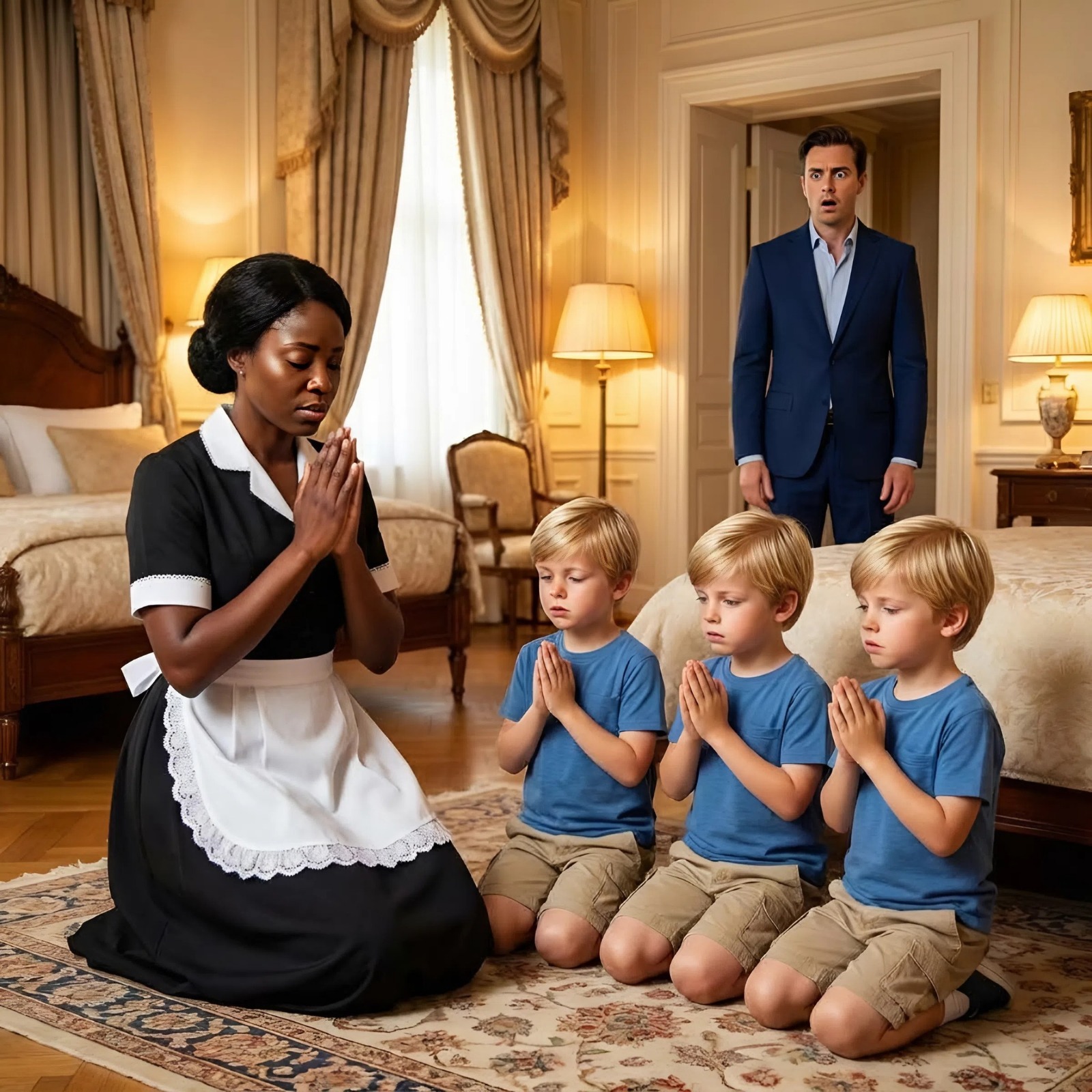 Un multimillonario llegó sin anunciar y vio a la criada con sus trillizos. Lo que vio lo impactó